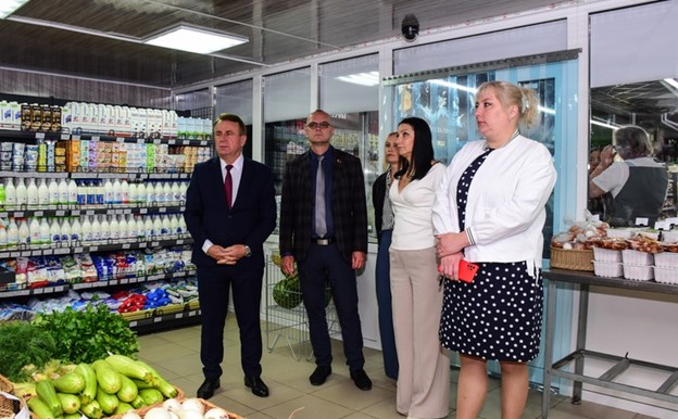 На открытие обновленного магазина приехали гости — председатель правления Гомельского областного потребительского общества Леонид Янкович и заместитель председателя Гомельского райисполкома Алексей Мохарев.