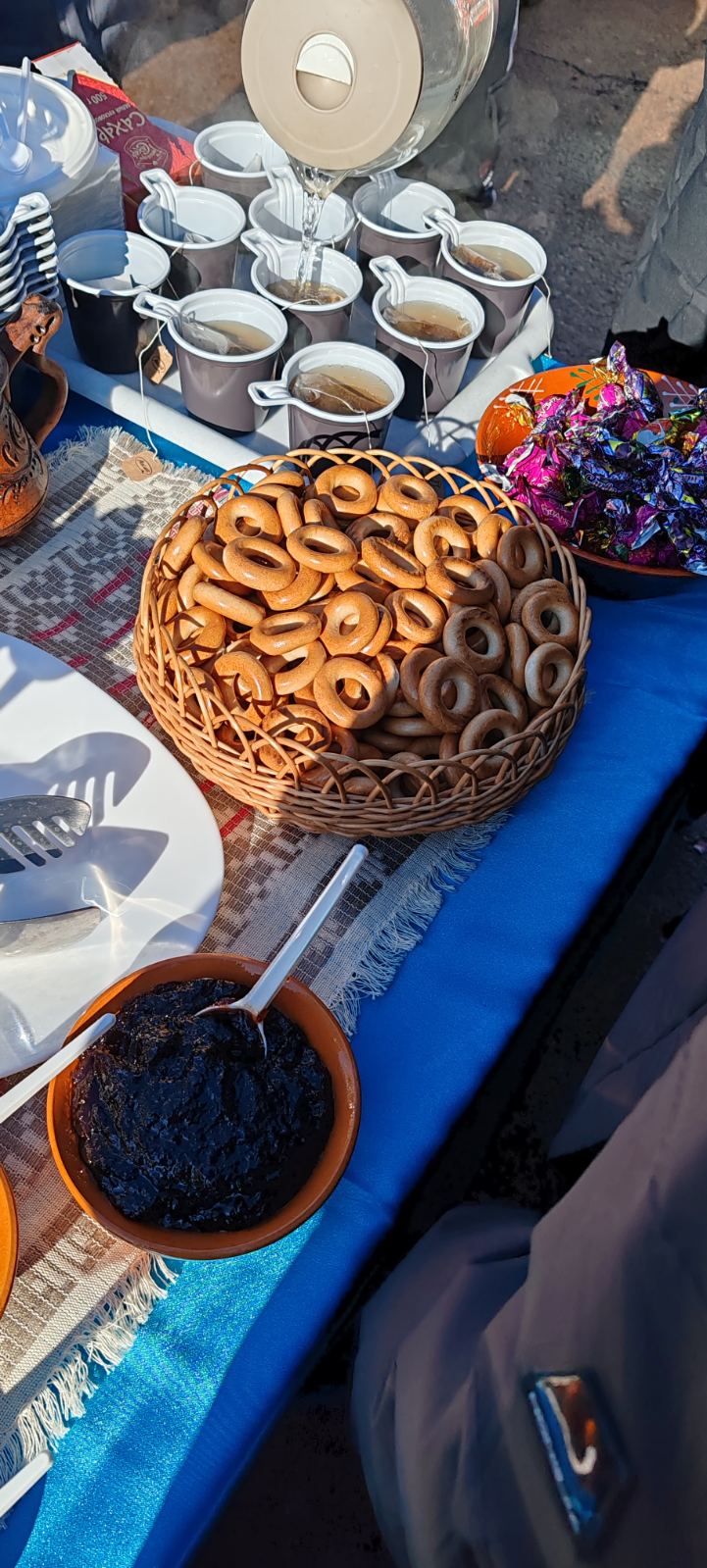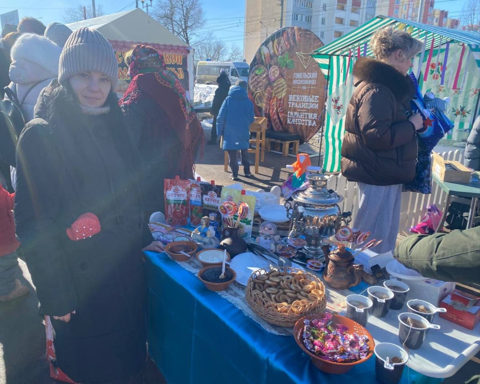 🥞 Гомельский жировой комбинат на Масленицу устроил настоящий праздник гостеприимства. Гостей встречали горячим чаем🫖, домашними блинами с медом🍯 и сгущенкой, а также аппетитными баранками🥯 и конфетами🍬 🍭.