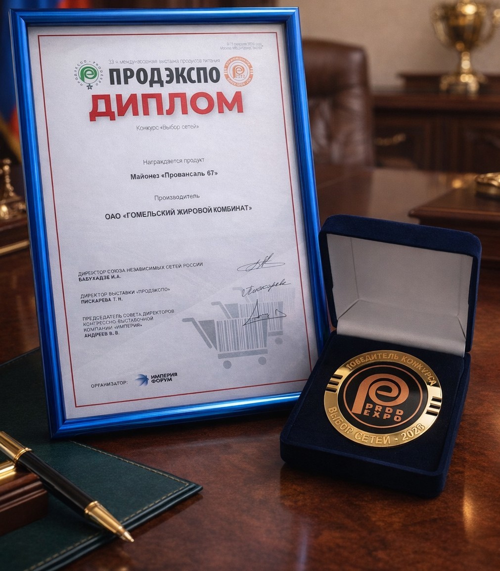 🥇 🏆 ОАО «Гомельский жировой комбинат» получил Диплом и медаль в номинации «Выбор сетей» за майонез «Провансаль 67».